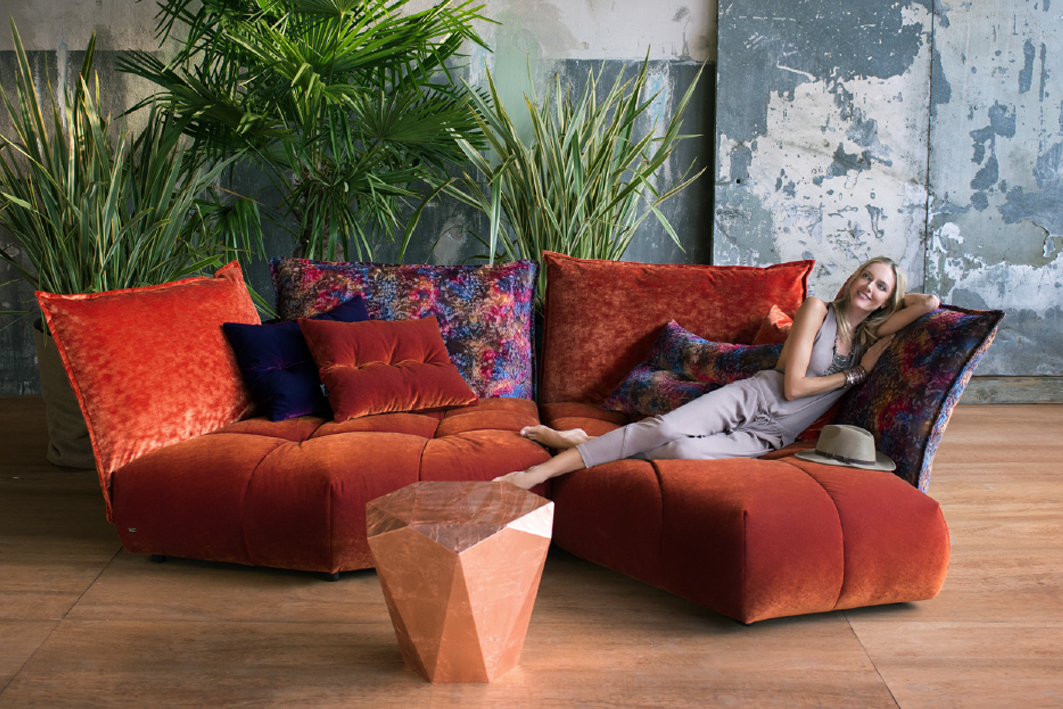 S’enfoncer dans le velours moelleux des coussins de MATILDA c’est oublier tous les soucis et prêter l’oreille à des récits magiques de jardins enchantés et de palais flottants. Le doux murmure de ces contes merveilleux répand une magie toute particulière. L’agitation de la journée est oubliée et nous accueillons les heures de la soirée pour laisser libre cours à l’imagination. Tout est possible avec ce système de canapé modulaire inspiré par sa forme pentagonale originale : du petit ensemble aux immenses paysages merveilleux. Détaché des normes de la conformité, les modules asymétriques s’ouvrent sur l’espace pour faire apparaître à tout moment de nouveaux univers fantastiques. Les revêtements interchangeables des dossiers assurent une variété pleine de vie. A nulle autre pareille, MATILDA nous entraîne avec douceur vers le royaume infini de la puissance créatrice, dans un univers rempli d’images merveilleusement poétiques.