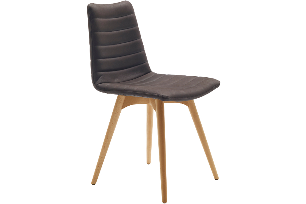 COVER L est une chaise avec quatre jambes avec finition du cadre en bois chêné foncé, chêne naturel ou laqué blanc. Coque rembourée en cuir, cuir éco, tissu.