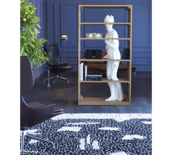 Formes en suspension, délicates et verticales. Les panneaux frontaux peuvent être personnalisés avec toutes les textures Capo d’opera : ces bibliothèques apportent une touche de grande classe dans la proportion des espaces.